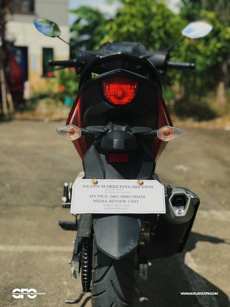 I have ridden the Honda Supra GTR to Laguna, Batangas, Tagaytay and in terms of riding comfort, the Supra GTR is not the best in long rides, which is understandable. Again, it is a sporty bike, so the sporty seat dsign makes it a bit uncomfortable on longer rides. It comes with a front telescopic fork while the rear features a monoshock. The suspension setup isn’t stiff but not too soft either. Stopping power comes courtesy of front and rear disc brakes which is great, but I still wish that there would come a time where ABS would be a standard in this segment.