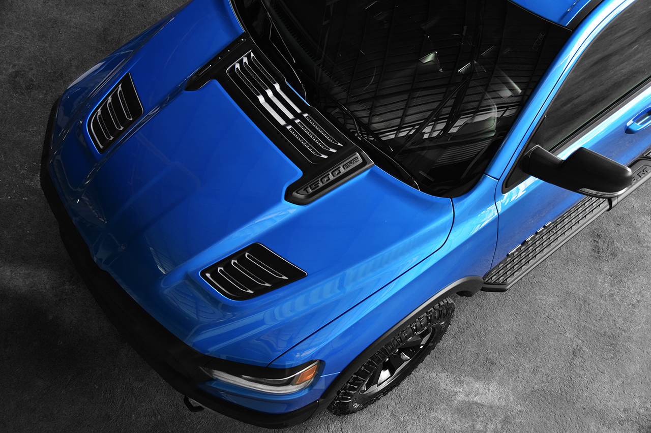 Powering the Ram 1500 Rebel is a 5.7-liter Hemi V8 naturally-aspirated gasoline engine that produces 395 hp and 410 Nm of torque. Power is sent through an 8-speed automatic manufactured by ZF via a 4WD system with a rear electronic locking differential. Additionally, thanks to the Bilstein shocks, ground clearance is more than 230 mm.